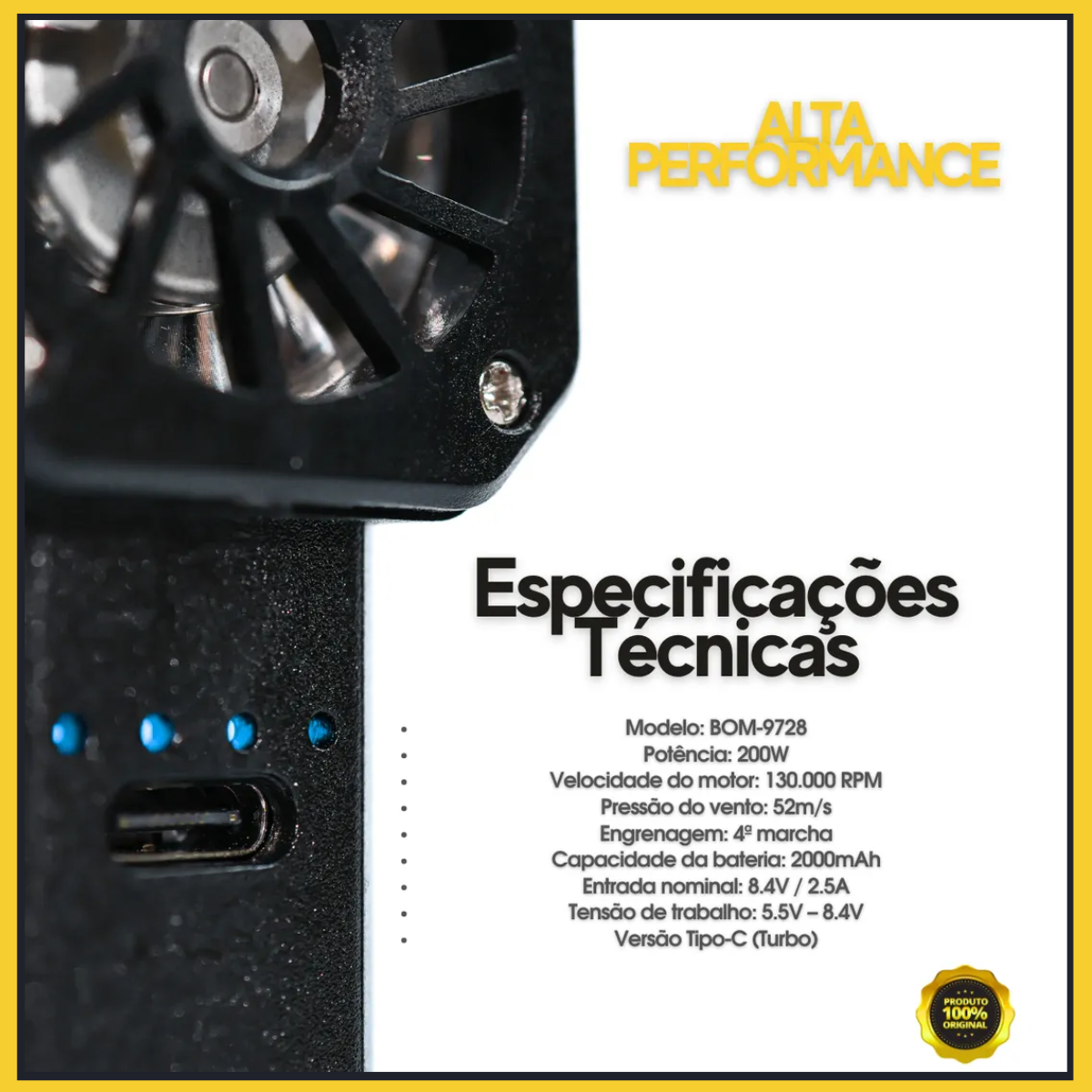 Soprador Portátil Turbo 200W Bomvink – Potência e Versatilidade