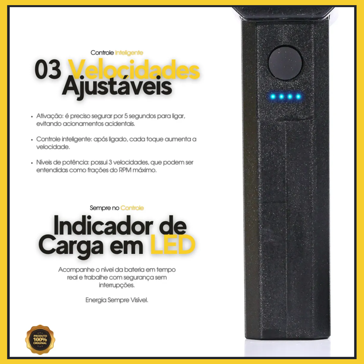 Com design compacto e leve, oferece conforto no uso contínuo e excelente desempenho com suas quatro velocidades ajustáveis. É a ferramenta ideal para uso doméstico ou profissional.