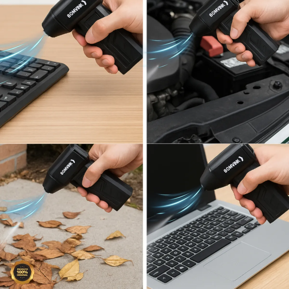 O Soprador Turbo Portátil Bomvink é a escolha ideal para quem busca potência, praticidade e eficiência em um único equipamento. Perfeito para limpar cantos difíceis, eletrônicos, carros, estofados e até acender churrasqueiras em segundos.